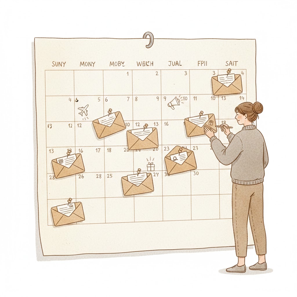 Not everything is a real-time trigger. Maya still runs a seasonal gift guide email in November. She sends a birthday message to every loyalty member whose birthday falls that month. She does a direct mail drop to her highest-value customers twice a year with a handwritten-look note and a small gift.